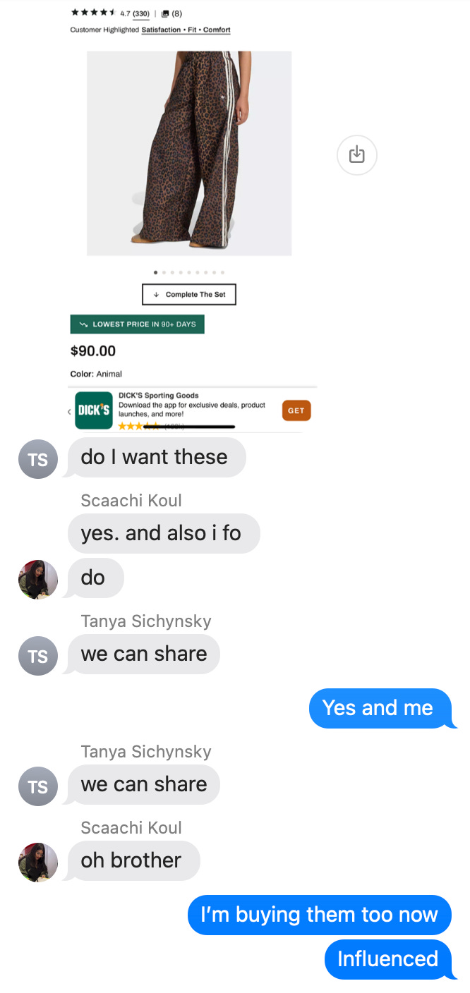 - The pants that we all bought this morning (and a matching dress that at least one of us did):