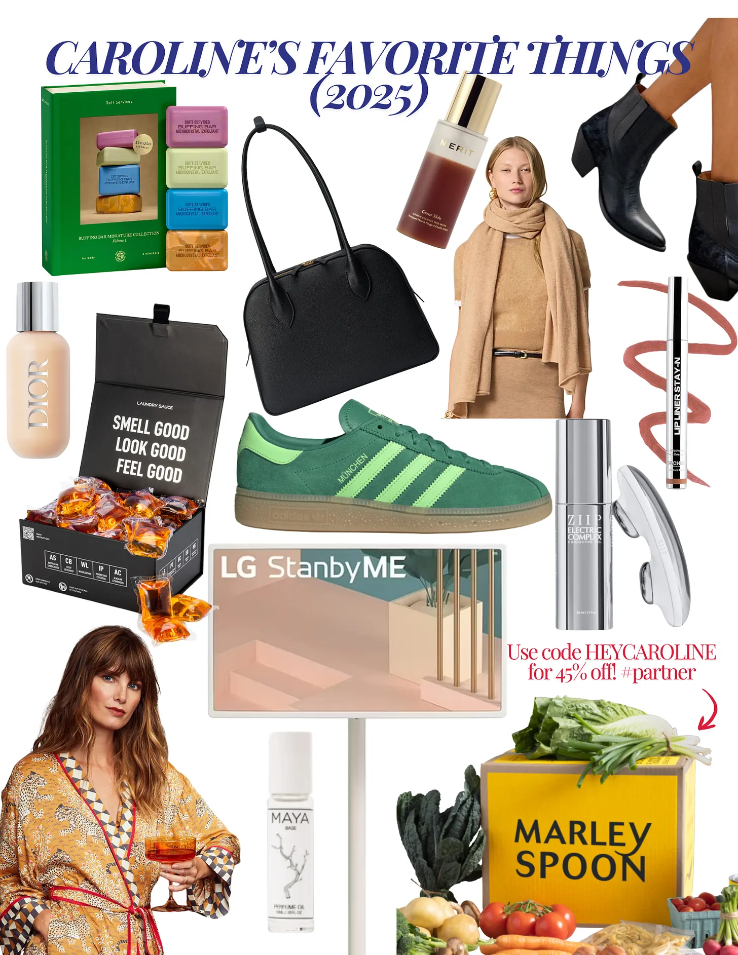 All my favorite things from 2025 in one easy-to-shop gift guide. The exfoliating bars I won’t shut up about, the sleek black bag I take everywhere, the cashmere wrap that transforms every cold-weather outfit, and the green sneakers that spark “oooo, which ones are those?” every time I wear them. Beauty-wise, there’s ZIIP (use code GEEZIIP) and the peel-and-stay lip liner living in every coat pocket. At home, my Laundry Sauce pods make clothes my smell expensive and the TV-on-a-stick that changed my bubble bath game for the better. And yes — Maya! Duh!