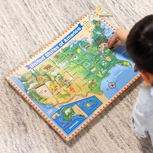 - Wooden sound puzzle helps kids learn about the 50 states and their capitals