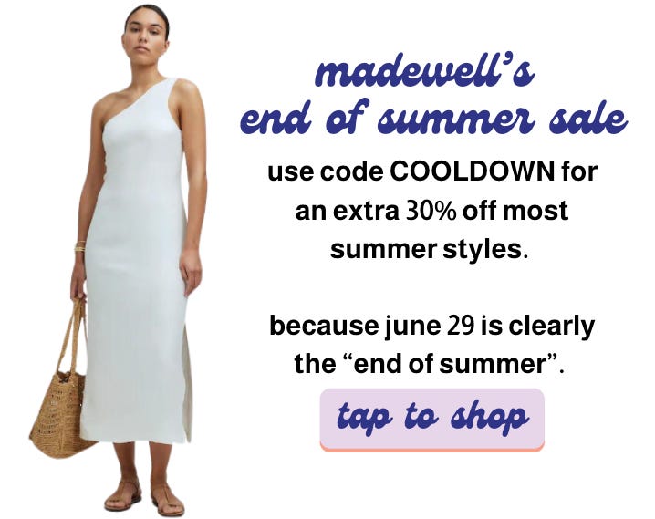 If you’re reading this email, chances are you already subscribe to these emails. So! Forward it to your group chats, parent friends, and family members who also love shopping the Black Friday(s) of Summer and tell them to subscribe using this button.