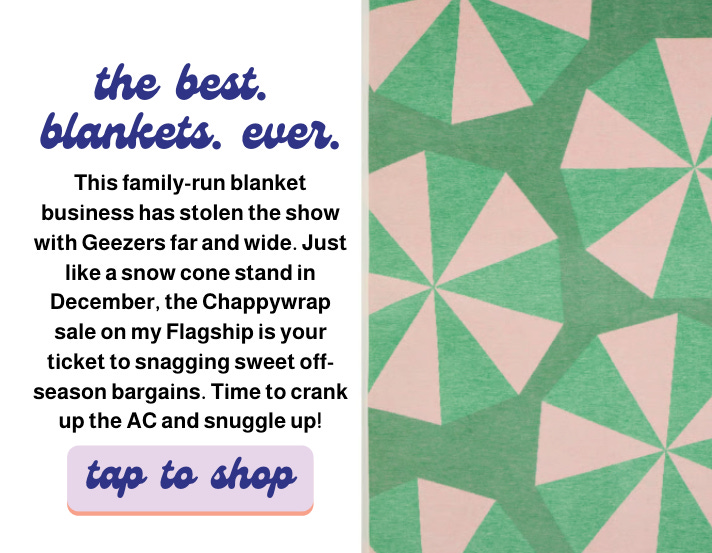 PS. This month our newsletter is sponsored by Dermstore! Snag the best deals on your favorite skincare brands like Dennis Gross Peel Pads, the big thing of Supergoop!, Aesop, and all things Paula’s Choice. Code GEETHANKS gets you the best deal. Dermstore always has Geezers covered.