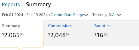 Here’s what last year’s commission earnings looked like from Feb 1-19, 2024: