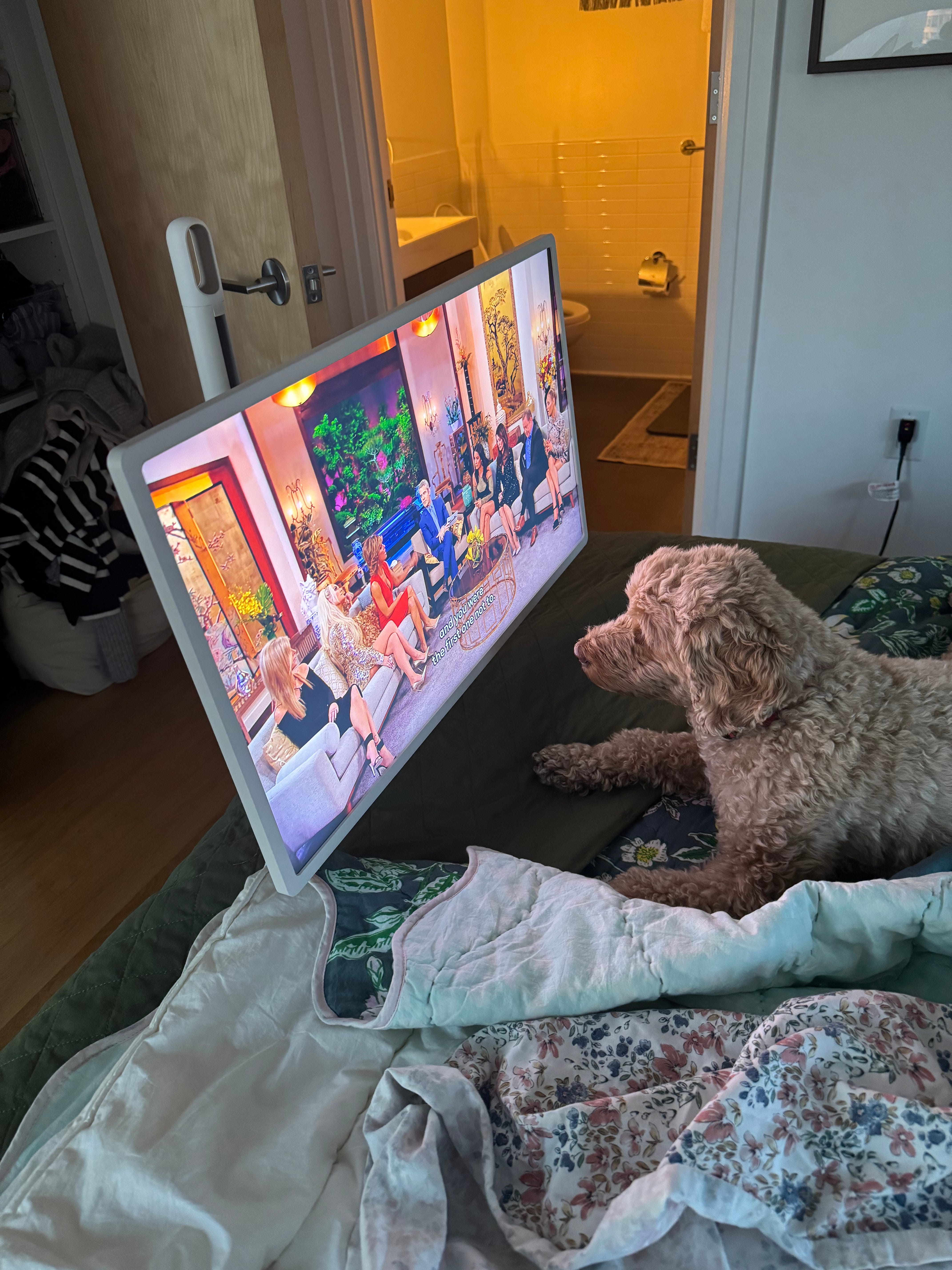 Growing up in a household where TV time was limited, it’s probably no surprise that I’ve become the kind of adult who loves having the TV on all day—not to watch it, but just for the comforting background noise. For a while, I told myself I didn’t have a TV in the bedroom on purpose—that it was a “sanctuary” for sleep and reading, free from distractions. But honestly, that was total bullshit. I yearned for a tv in my room! Never mind that I have one in my living room, and in my office!