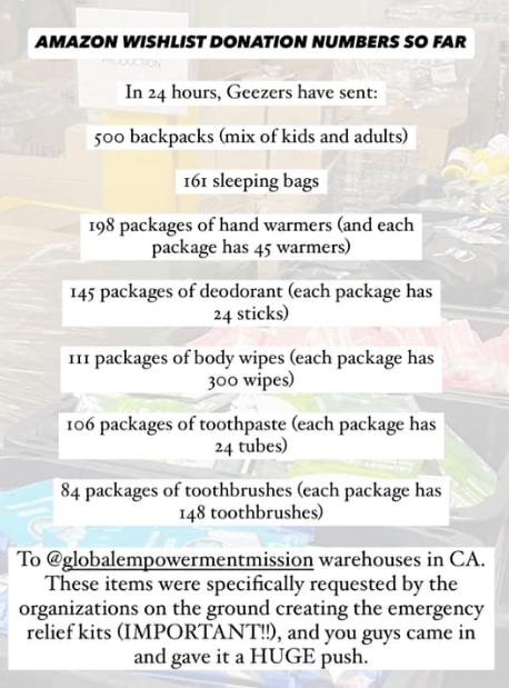 And LA Geezers, we love you and our hearts are with you. More specific ways to help affected Geezers coming soon.