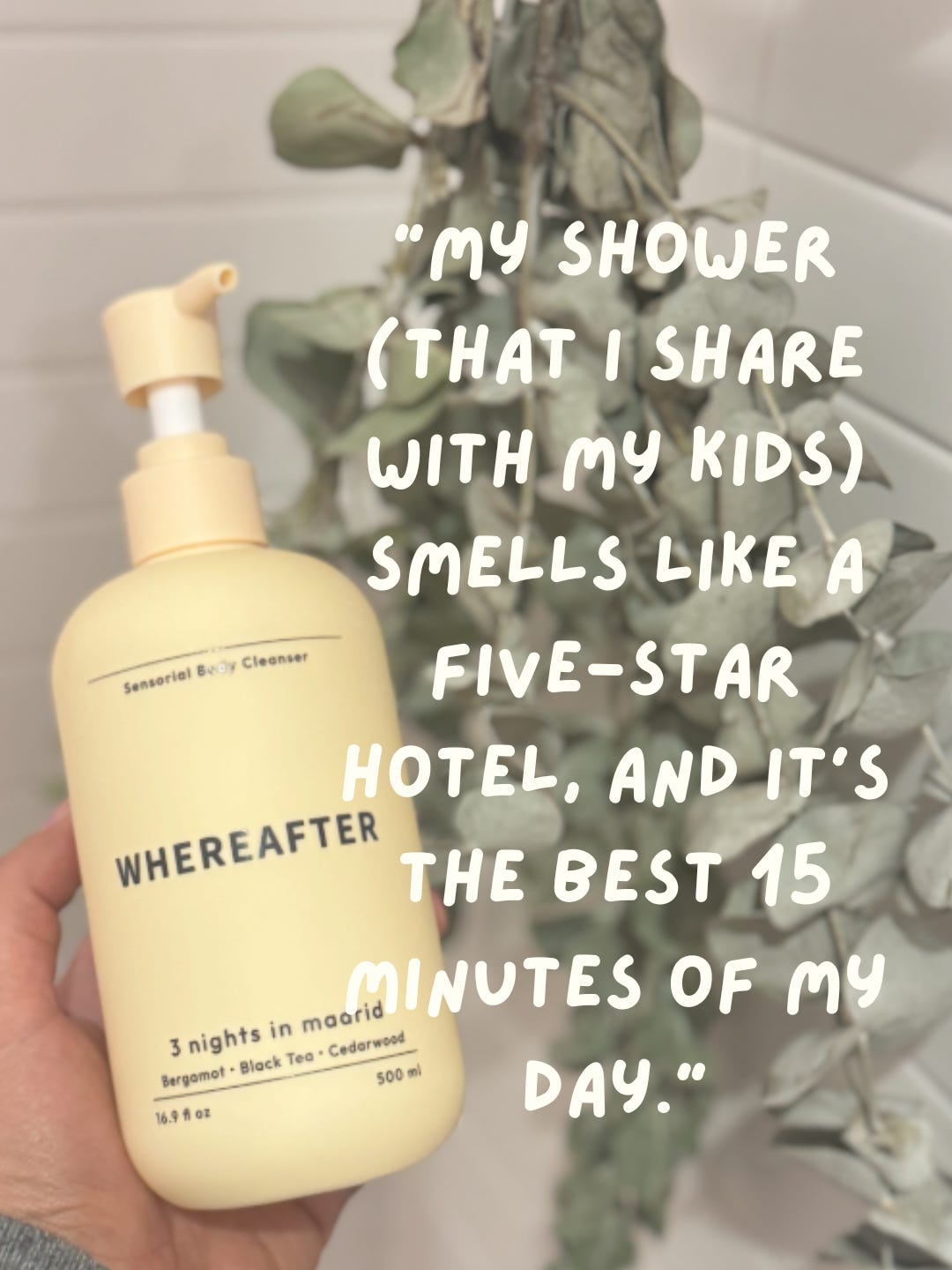 There are so many body washes in the body wash space, but this one called “3 nights in Madrid” from the brand Whereafter is the first one in a long while that made me do a double sniff. It’s great and long-lasting; I still get a whiff of it on myself hours after I shower. What I like about this one is that it doesn’t use plain water as the base. It uses aloe vera juice and chamomile hydrosol instead, which I didn’t even realize was a thing until I tried it. It just feels softer when it lathers, and my skin doesn’t have that tight, squeaky feeling after I rinse off. It’s a nice treat in a scent profile I really like, and the friends I shared it with like it too.
