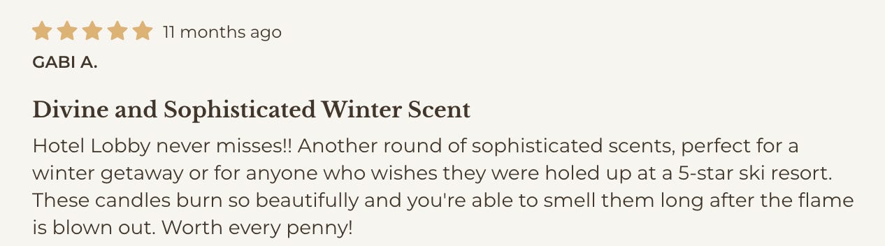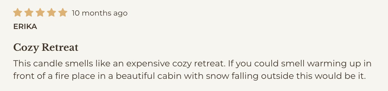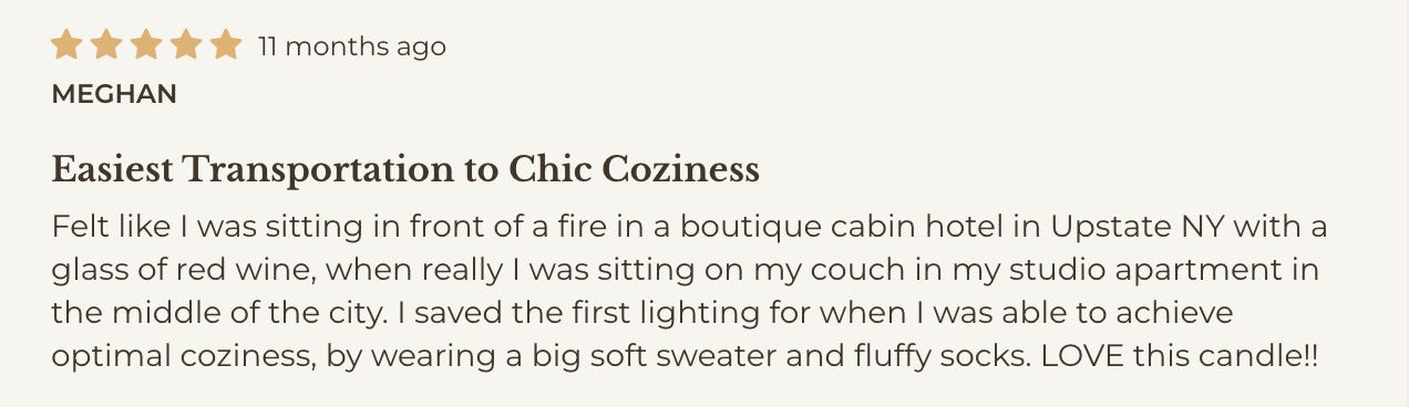 Cabin happens to be my favorite cozy scent in the Hotel Lobby Candle oeuvre (fav warm-weather scent is Linen). Here’s what others had to say.