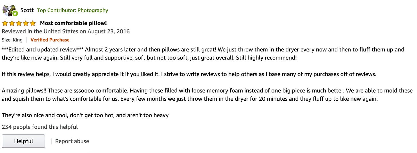 The goods: Better-for-you pillow, helps with pain, is affordable, is truly comfortable.