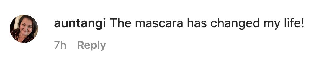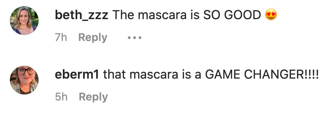 If you missed it, we have a new favorite product that’s going bananas in the Geezer community: Merit’s Clean Lash Tubing Mascara. And I’m not just saying that! Based on the clicks to sales conversion rate I can see that the last time something skyrocketed this high and this fast it was Maya Base perfume oil. And we all know how that turned out. (It turned out great.)