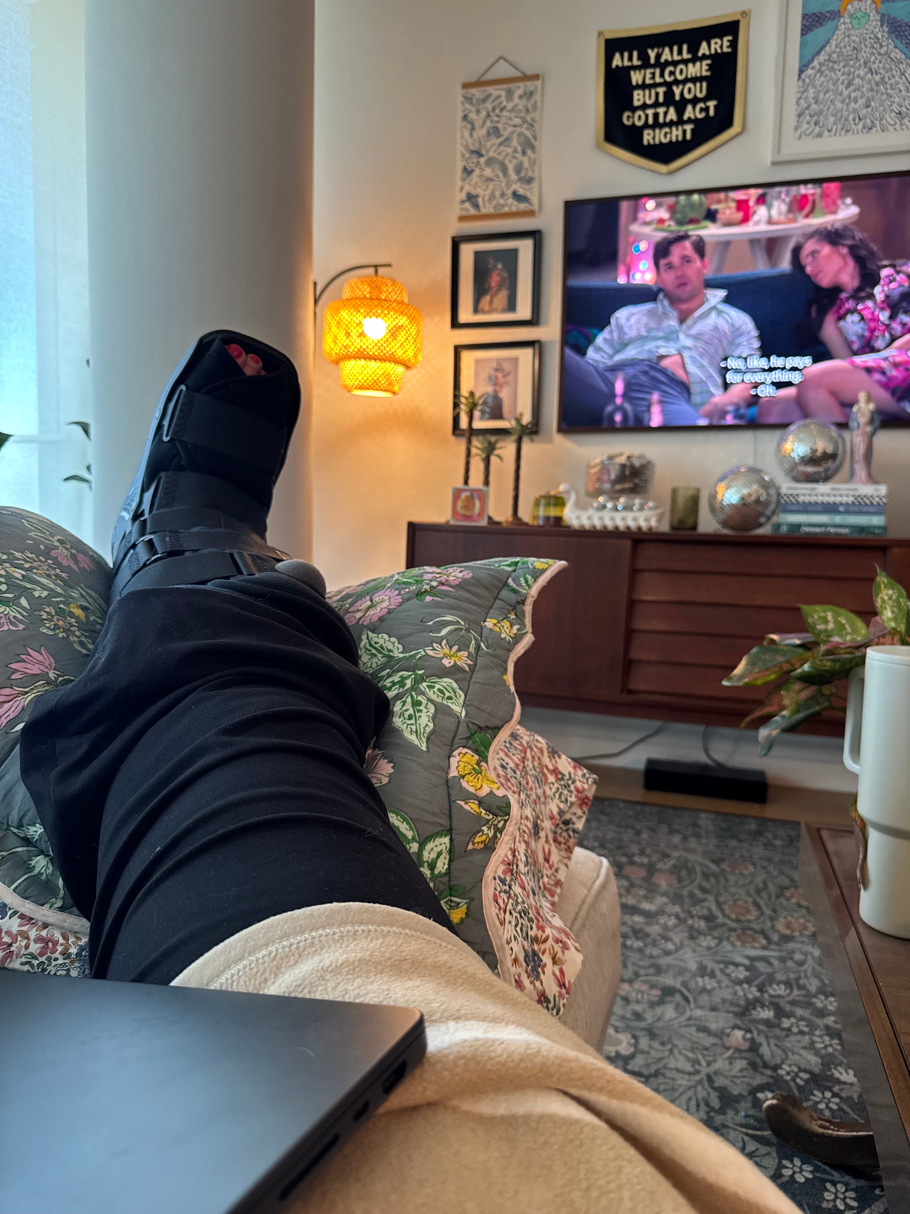 It’s a hairline fracture spanning the length of my fifth metatarsal, and remember when I did two full multi-hour episodes of Ali on the Run about my quest to run the 2026 marathon? Yeah, wellllll, this injury sets us back a bit. I was slated to run my first 10k in October and it’s looking like I won’t be able to start running again until November if all heals well. By November I’ll probably be back at the beginning and need to train up to a 5k again. I don’t know, the whole thing is so disappointing and even though I haven’t stopped wanting to run the marathon it does feel like a sign that every time I try to take running seriously I get injured. My last real injury was when I blew out my knee running in 2018. Also the last time I was running semi-regularly. So maybe my fate is not running? I don’t know. If Ali is reading this, she’ll yell at me! I know, I know, I’ll come back from this. Just let me wallow!