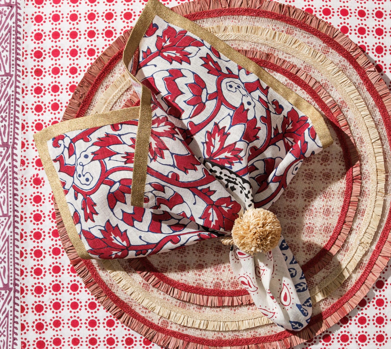 Caroline: I am entering my table linens era, and I can’t stop buying napkins and runners and tablecloths. My favorites right now come from designer Joanna Buchanan, who partners with small artisans internationally to create her luxe line of home decor. 100% cotton and festive without being tied to any one holiday or season.