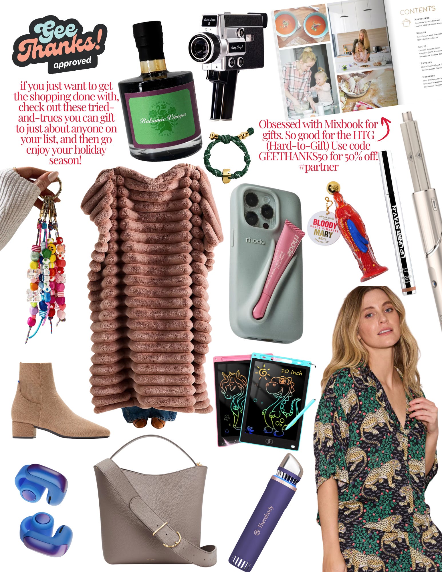 In my hands I have two gift guides. The first is Geezer-Approved. If you just want to get the shopping done, this is the one. These are the tried-and-trues! In this gift guide are things I’ve bought, loved, and gifted (or been gifted!) over the years that work for pretty much anyone on your list. Teachers, in-laws, siblings, coworkers, HTGs (“hard-to-gift”), you name it.